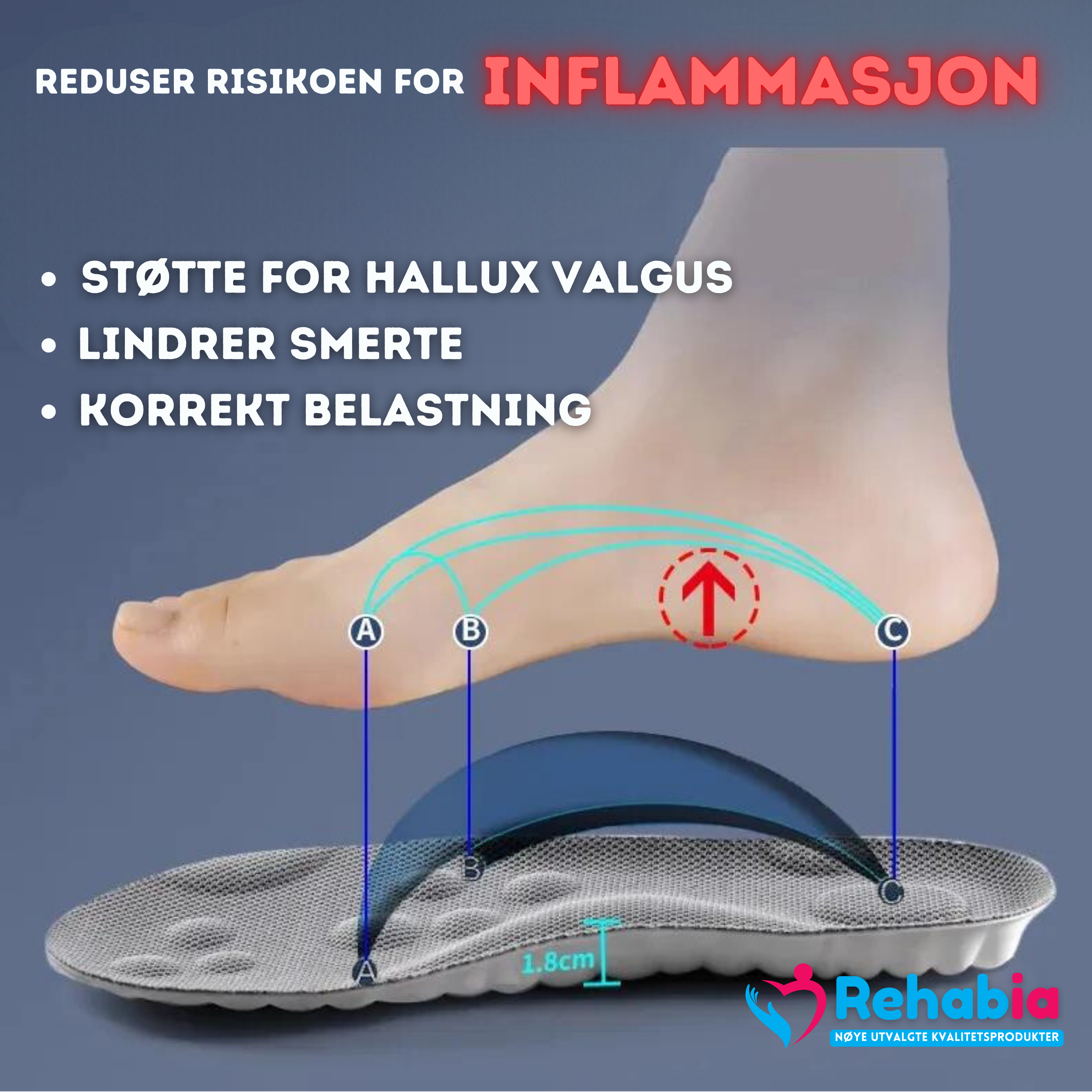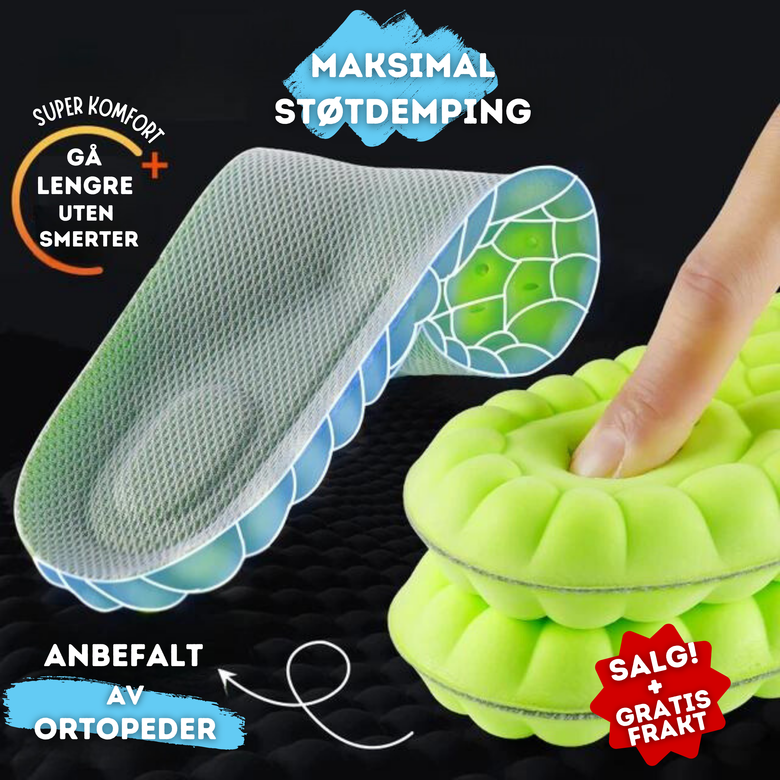 Innleggene tilpasser seg føttene for å fordele kroppsvekten bedre og redusere belastningen.